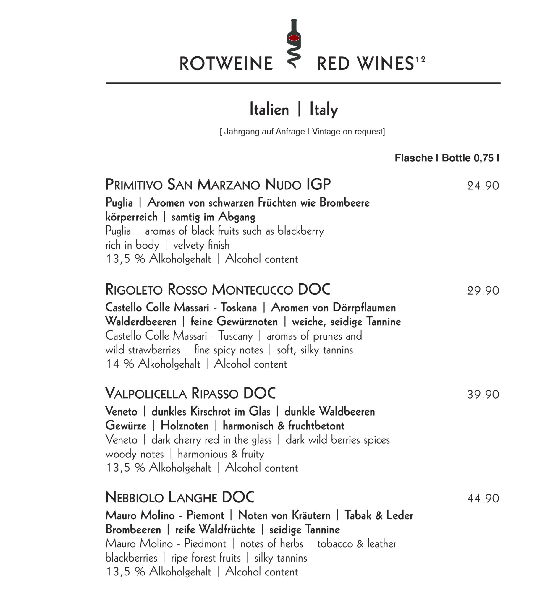 Alle Flaschen | All Bottles 0,75 l