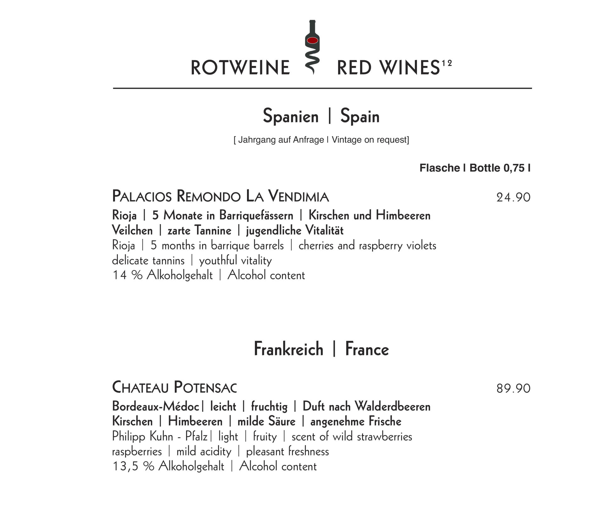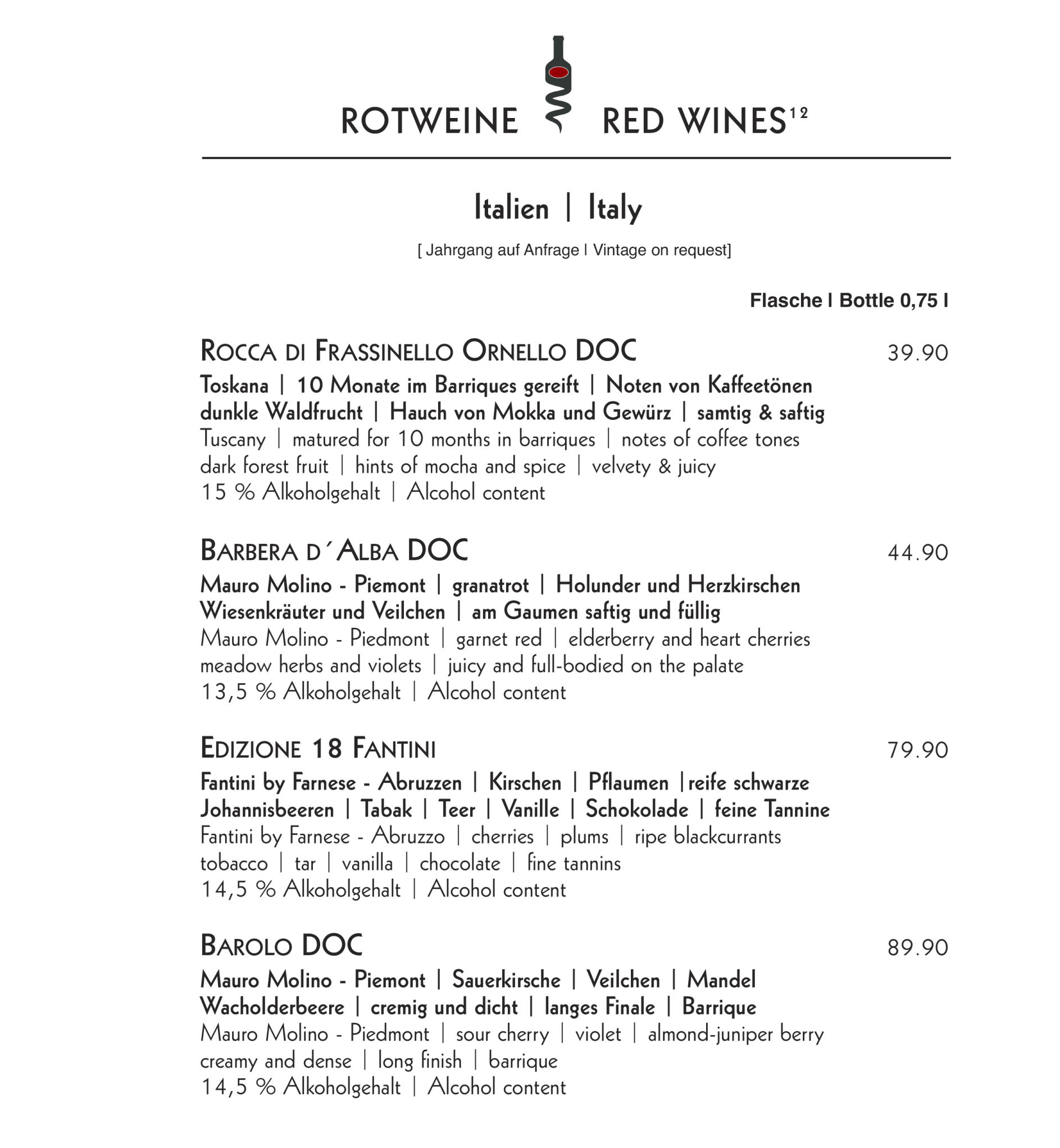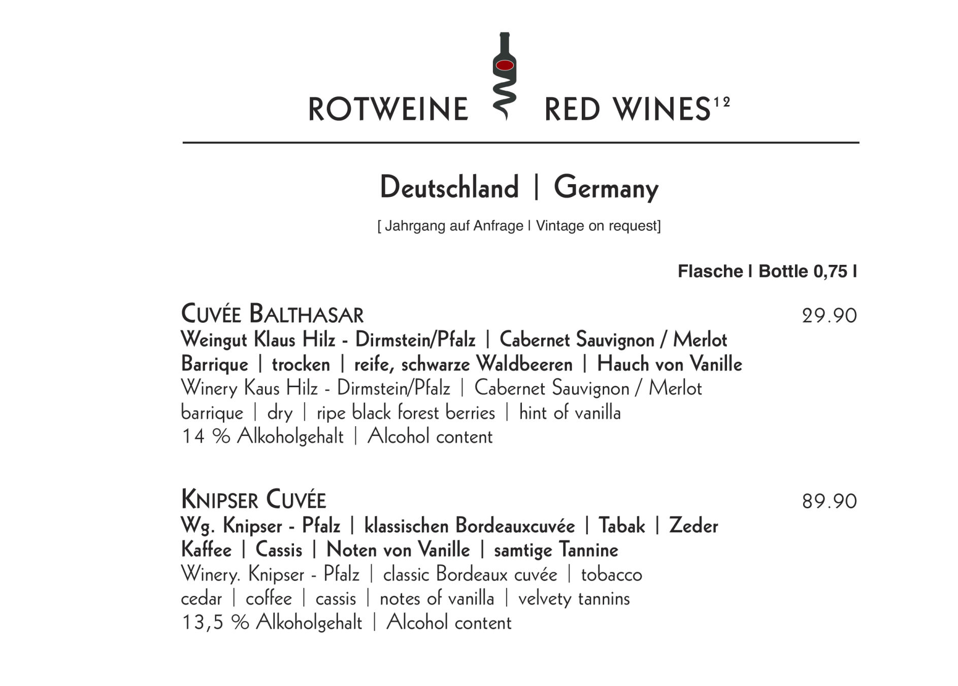 Alle Flaschen | All Bottles 0,75 l